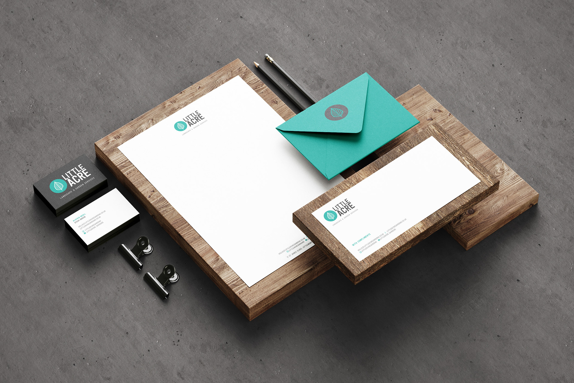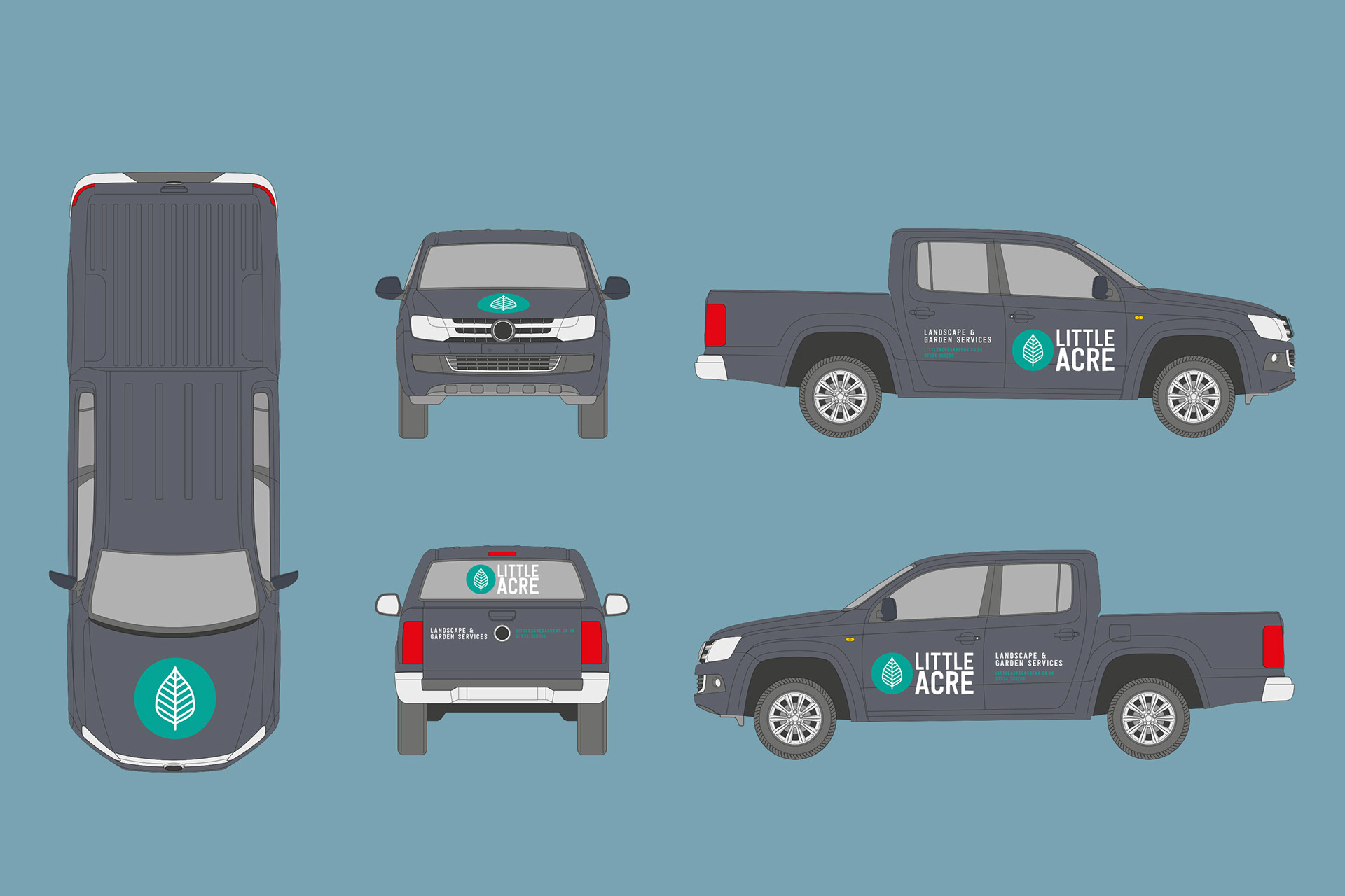Logo design for a local landscaping company Little Acres. Logo visuals were visualised along with a colour palette, matching stationery and van livery.